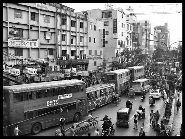 A busy Dhaka road.