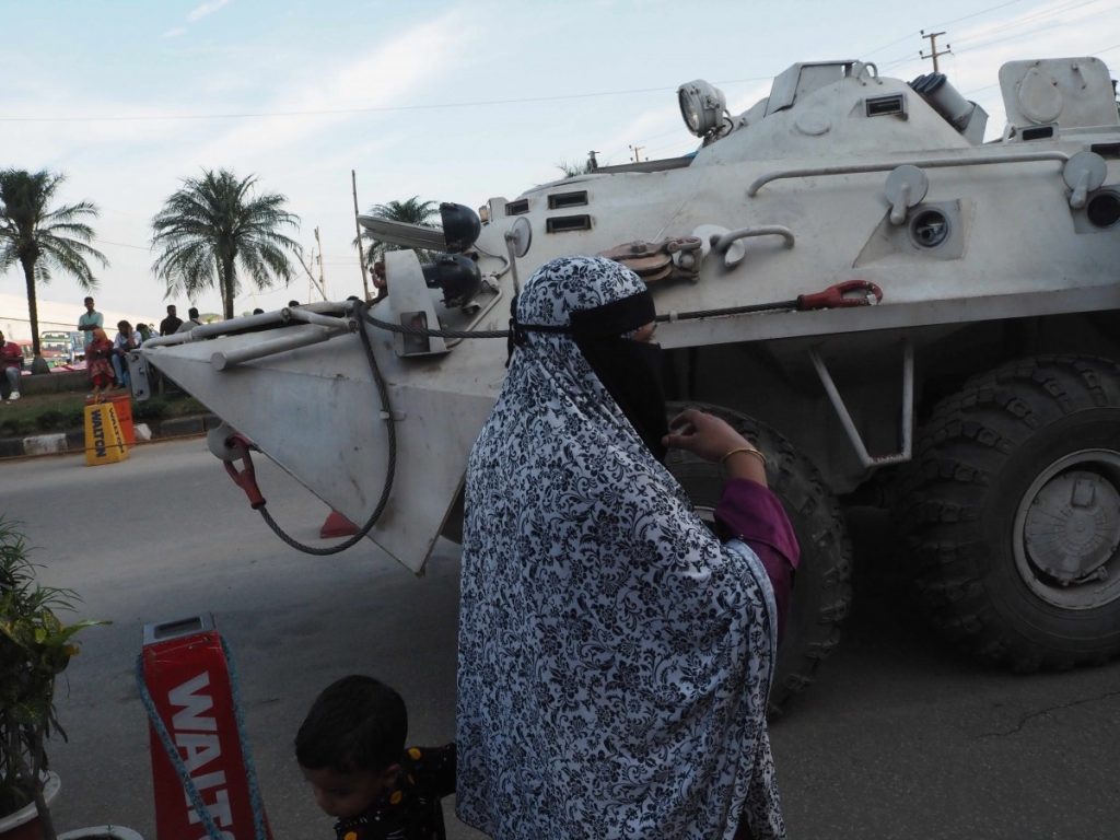 My driver says that "Mujibur Rahman’s large portrait has been ripped apart". I see a Soviet-era BTR80 – an armoured vehicle with a tired army man peeping out. My driver says he wasn’t fighting a war but maintaining peace.