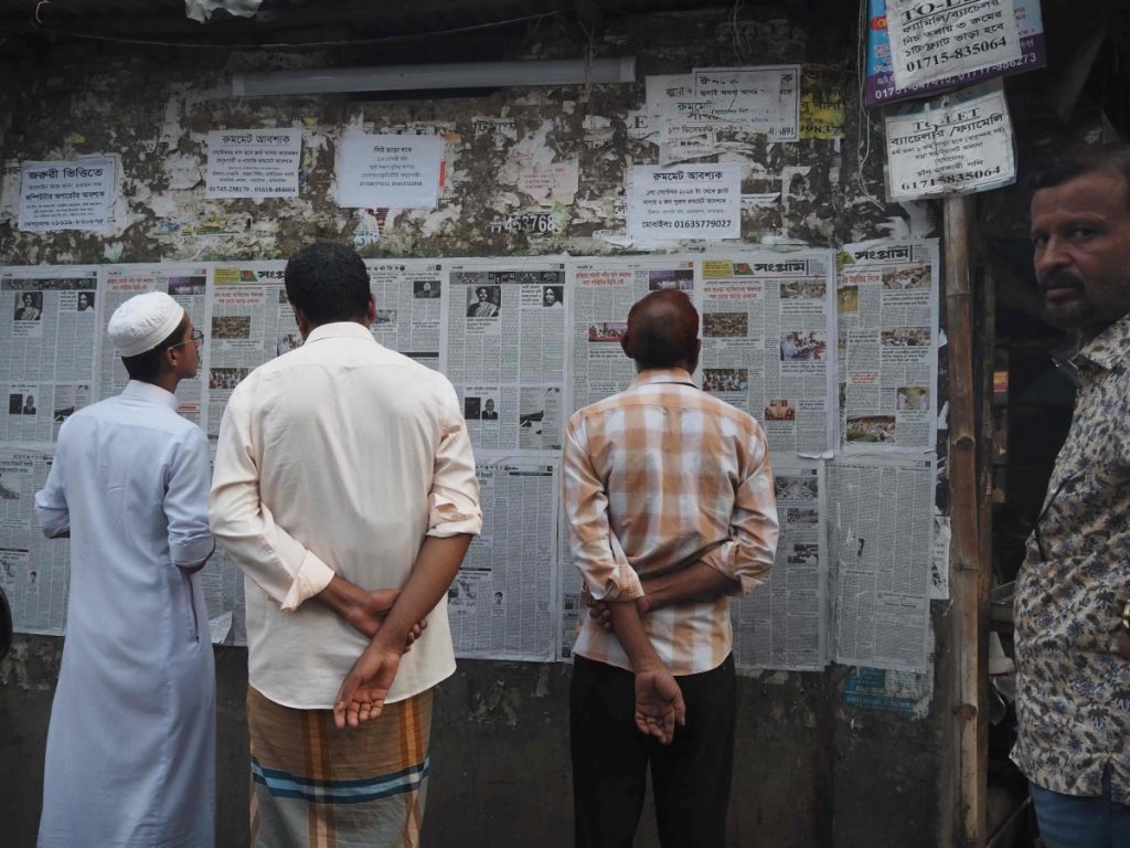 People read Jamaat's newspaper Sangram in Old Dhaka.