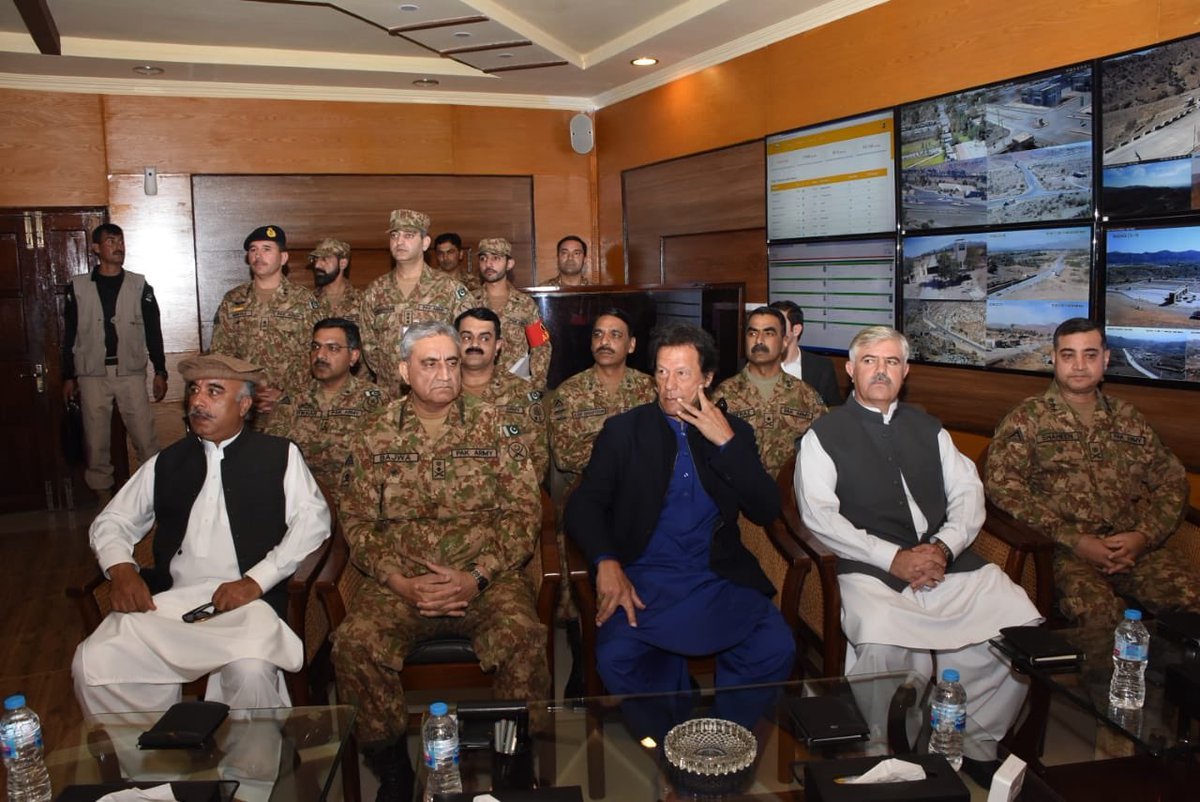 File photo of Pakistan army chef General Qamar Bajwa and Prime Minister Imran Khan in Miranshah. Photo: Khyber TV