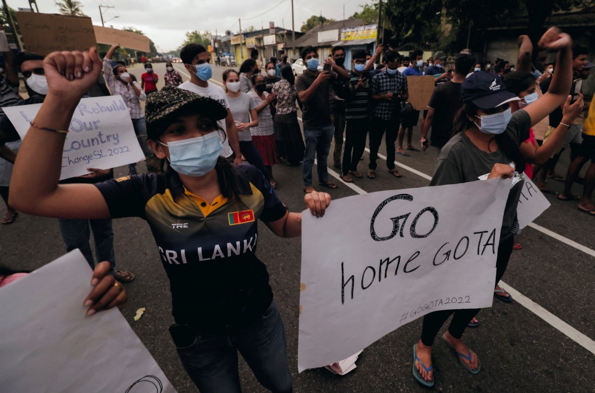 People shout slogans against Sri Lankan President Gotabaya Rajapaksa in a residential area after the government imposed a curfew following a clash between police and protestors near the President's residence during a protest amid the country's economic crisis, in Colombo, Sri Lanka April 3, 2022. Photo: Reuters/Dinuka Liyanawatte