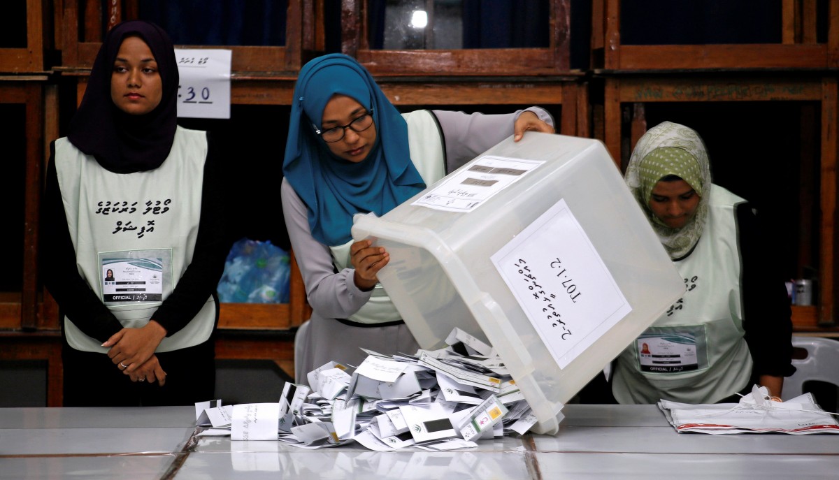 Maldives election commission officials prepare ballot papers for counting votes at a polling station at the end of the presidential election day in Male, Maldives September 23, 2018. Credit: Reuters/Ashwa Faheem/Files