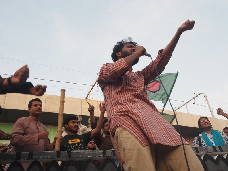 As Kazi Nazrul Islam’s revolutionary song Karar oi louho kopat ('the iron doors of the prison') began to be sung on stage, it felt like a new revolutionary moment was beginning. Hadi had led the singing.