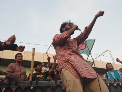 I first encountered Osman Hadi in September 2024 at the TSC junction of Dhaka University, beneath the towering Raju Bhaskar sculpture that has long served as a gathering point for dissent. Dressed in a red checked kurta and khaki trousers, and shaking his head of overgrown curls, Hadi was leading slogans from a makeshift stage. “Delhi or Dhaka…?” he asked, his voice thick with accusation. The response, “Dhaka, Dhaka”, came back in a roar.