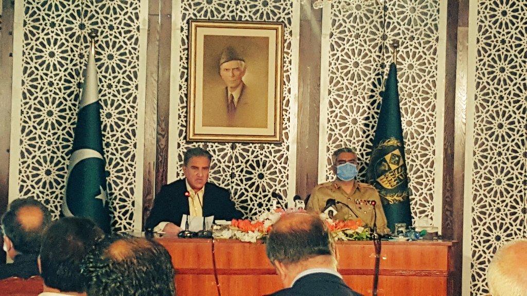 Screenshot of press conference addressed by Pakistan's foreign minister, Shah Mehmood Qureshi, and DG ISPR. Photo: Twitter