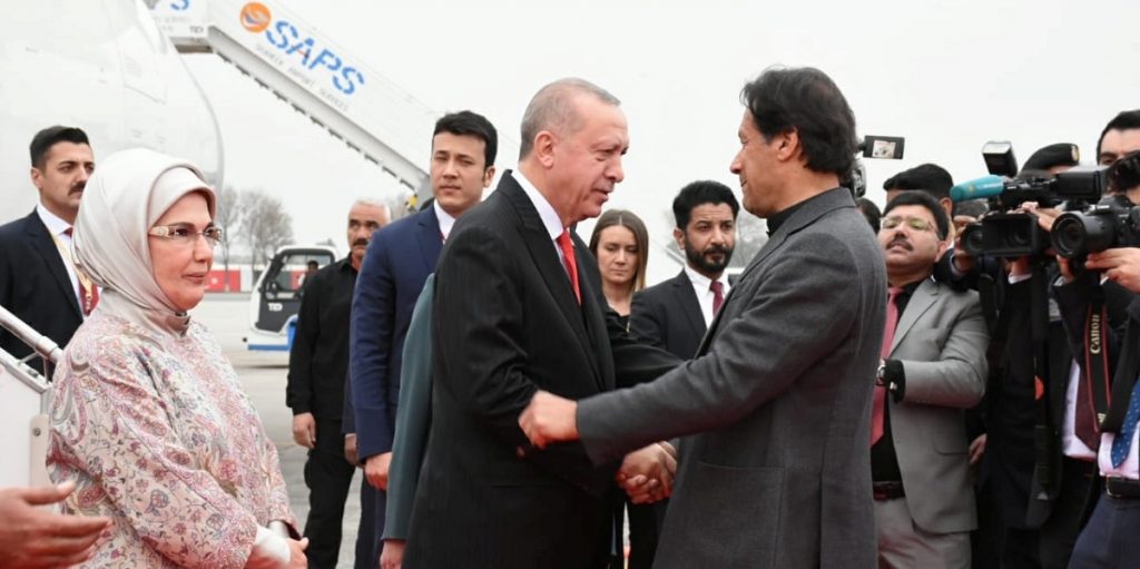 Pakistan's Prime Minister Imran Khan receives Turkish President Tayyip Erdogan on his arrival in Islamabad, Pakistan, February 13, 2020. Photo: Handout via REUTERS