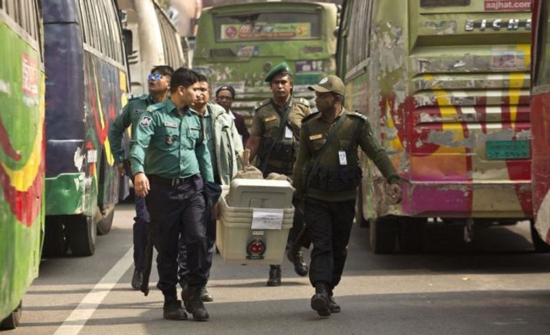 Bangladesh police chief Mohammad Javed Patwary said the nationwide polls are "progressing peacefully" and vowed to investigate the "isolated" incidents of violence. Over 600,000 security personnel including several thousand soldiers and paramilitary border guards have been deployed across the country to help conduct the election in which 10.41 crore people are eligible to vote. Security agencies have been asked to keep an extra vigil on religious minority communities as media reports said at least three Hindu households were set on fire by miscreants between December 16 and 26. According to the eyewitnesses, posters bearing the ruling party's "boat" symbol outnumbered those of the main opposition's "sheaf of paddy."