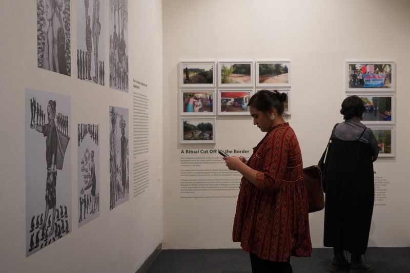 Such documentation of the Indigenous peoples of the CHT being impacted by borders and frontiers is crucial. From ‘Alienation’ by Adit Dewan, presented as part of ‘No Steady State,’ a group exhibition under Khoj and Goethe CISA 2024, held at Khoj Studios in March 2025. Photo: Shaheen Ahmed.