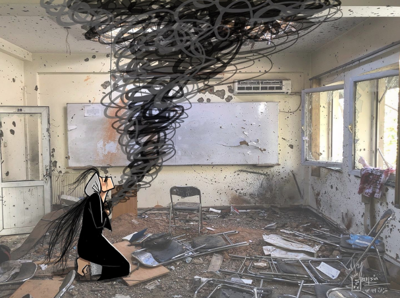 Hassani created this image after gunmen attacked Kabul University in November 2020 Photo: Twitter@ShamsiaHassani