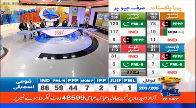 The PPP is sweeping the Sindh assembly, while PTI independents are way ahead in the Khyber Pakhtunkhwa assembly.