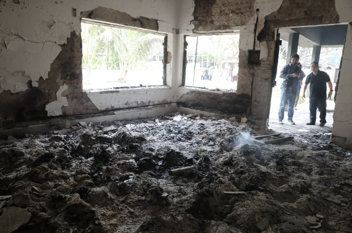 Charred ground floor of demolished Bangabandhu Museum at Dhanmondi 32. Photo: Zahidul Salim