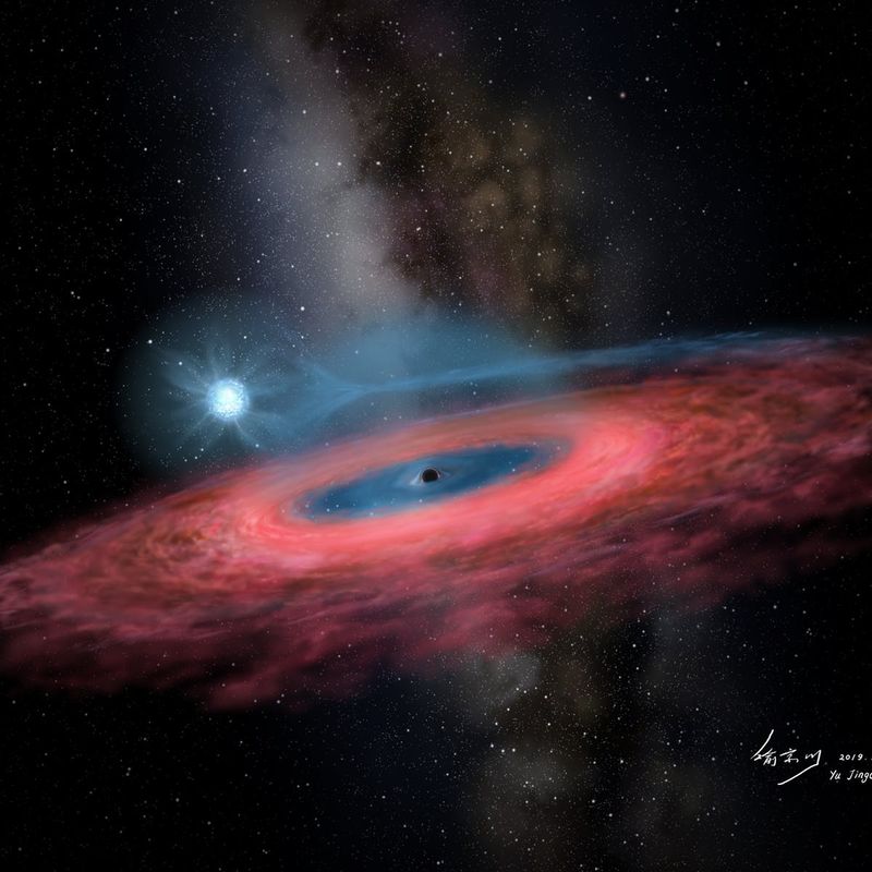 A recently discovered black hole – found by the way it makes a nearby star wobble – is hard to square with our understanding of how these dark cosmic objects form. Photo: NAOC, Chinese Academy of Sciences