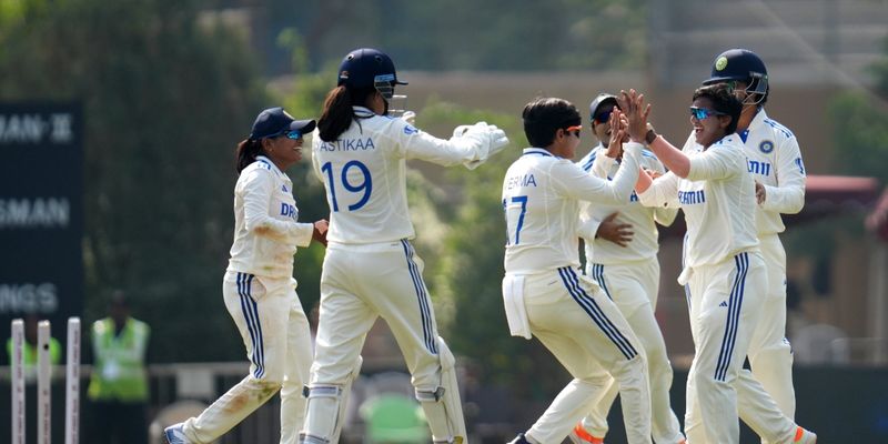 The Indian men's cricket team has played 95 Test matches in the last ten years, and the women's team's has played ten matches in the last 20 years. Photo: X/@BCCI.