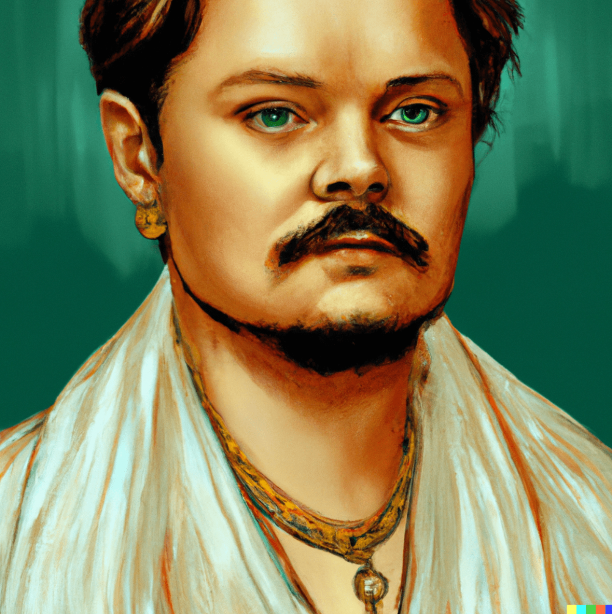 A convincing portrait of Leonardo DiCaprio in the style of Raja Ravi Varma: