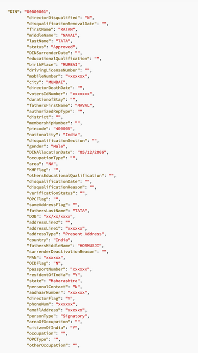 The security report details how the personal information that was available to be accessible on the MCA portal was much more than what is published by MCA. The data model shared in the report shows personal details, such as Aadhaar number, permanent account number (PAN), Voter ID, address, mobile number, and email ID. The data model includes internal flags designated by MCA, such as company director status, and whether director address is shared with another director to look for ghost directors and firms.