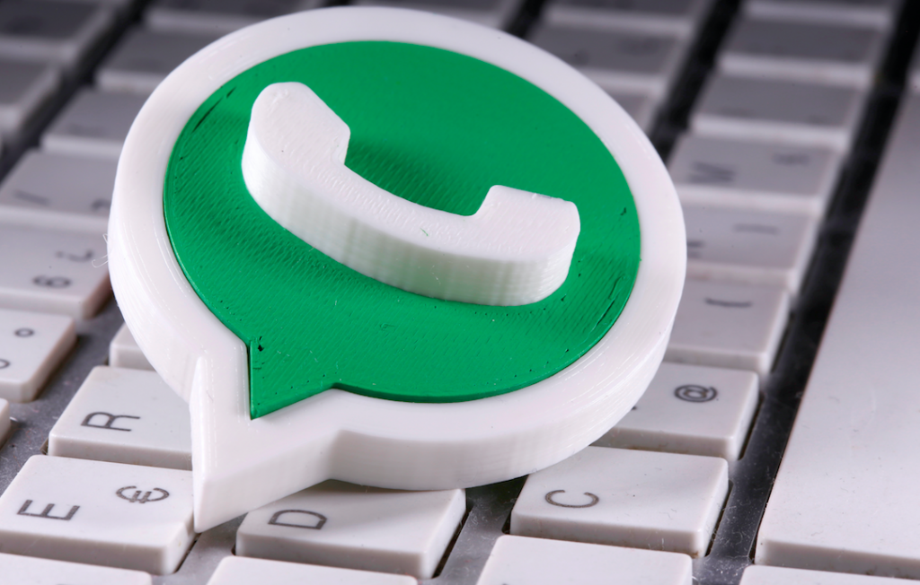 A 3D printed Whatsapp logo is placed on the keyboard in this illustration taken April 12, 2020. Photo: Reuters/Dado Ruvic/Illustration