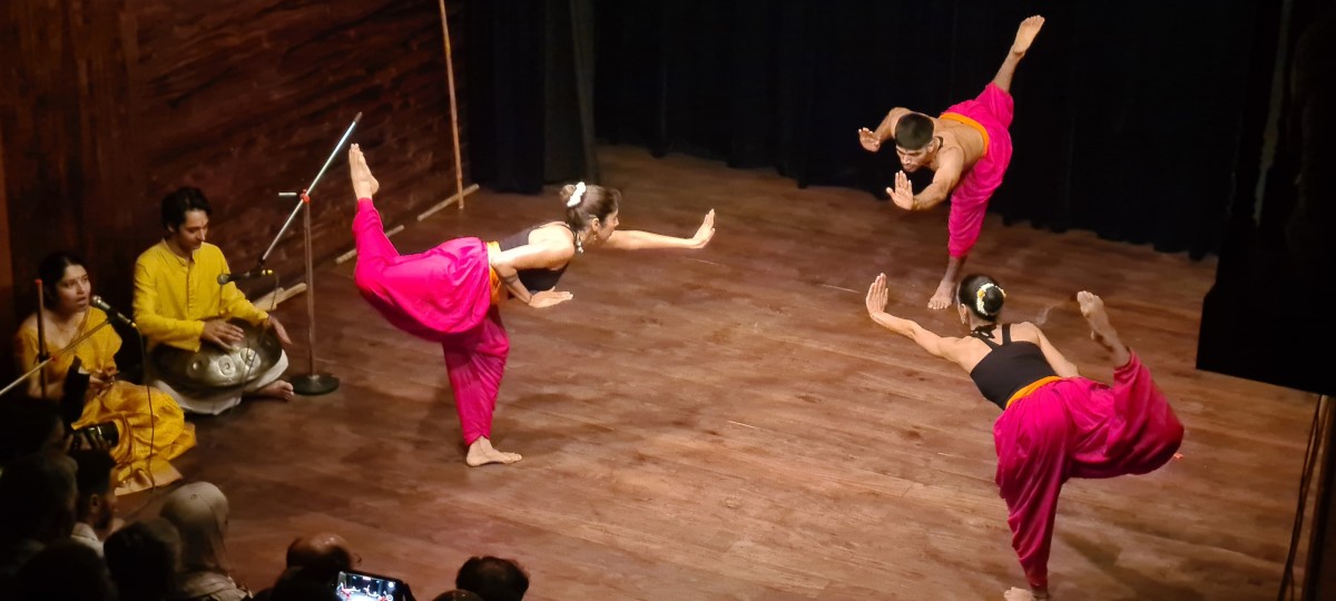 Himani Khurana, Ankita Alemona and Vivek Nainwal, with Jasmeet Rekhi and Ratika Bhandari on handpan and vocals, do the Kalaripayattu.