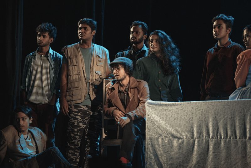 B.B., of course, stands for the unforgettable Bertolt Brecht. This endeavour, on the one hand, pays tribute to Bertolt Brecht, undoubtedly the greatest dramatist of the last century, whose 125th birth century we are observing this year; and, on the other, depicts a chilling account of the fractured time which we experience and yet resist. Indeed, after witnessing the production, I was prompted to recall the iconic words of the renowned poet, Sunil Gangopadhyay, “Nikhilesh, come and see how we are living.”