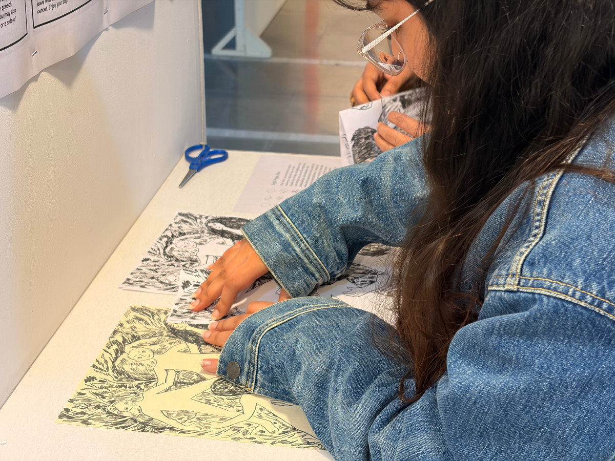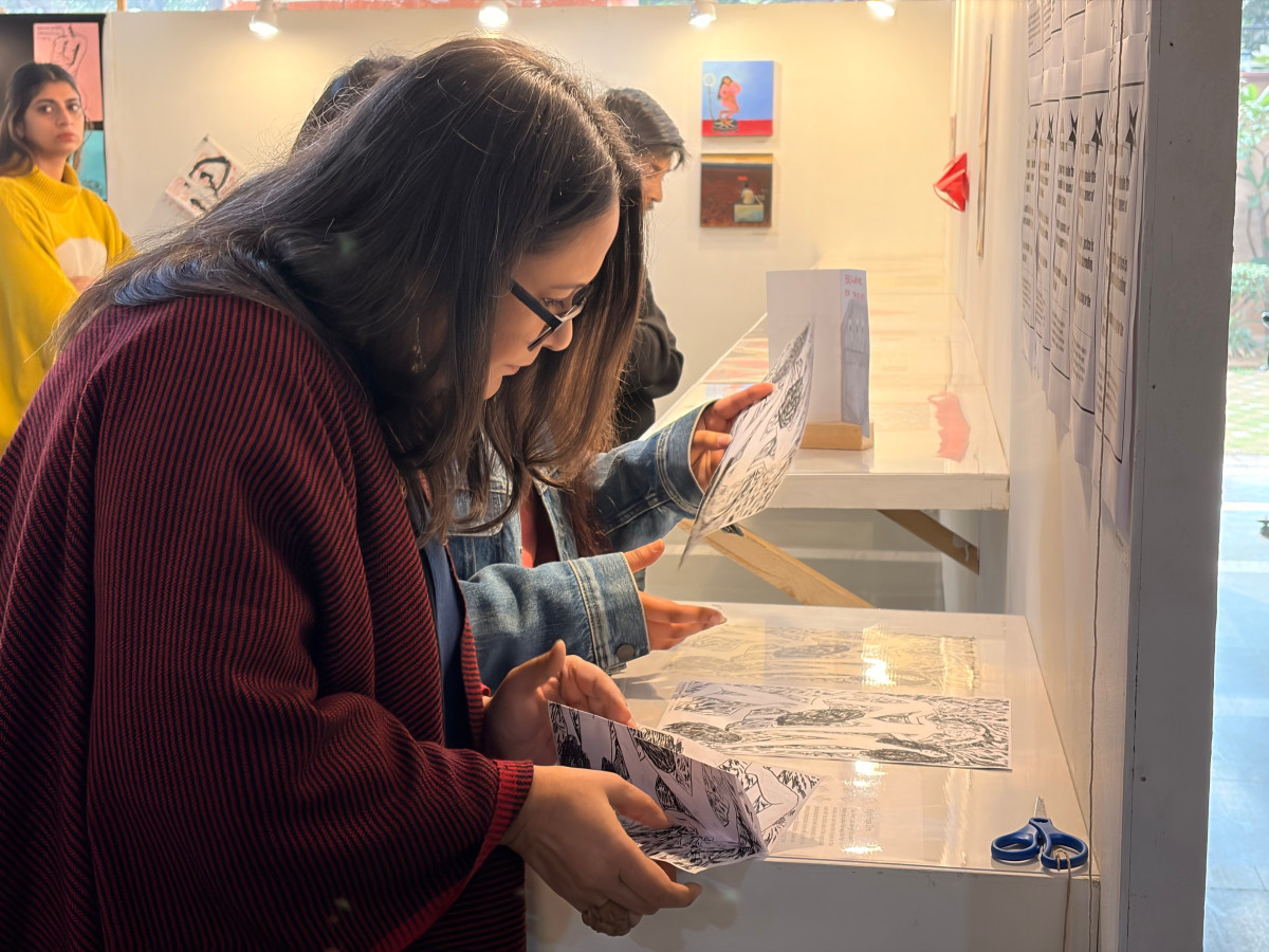 Some works invited tactile engagement. This pamphlet unfolds into an eight-fold zine, encouraging viewers to read, handle, and participate. Photo: Eshan Sharma