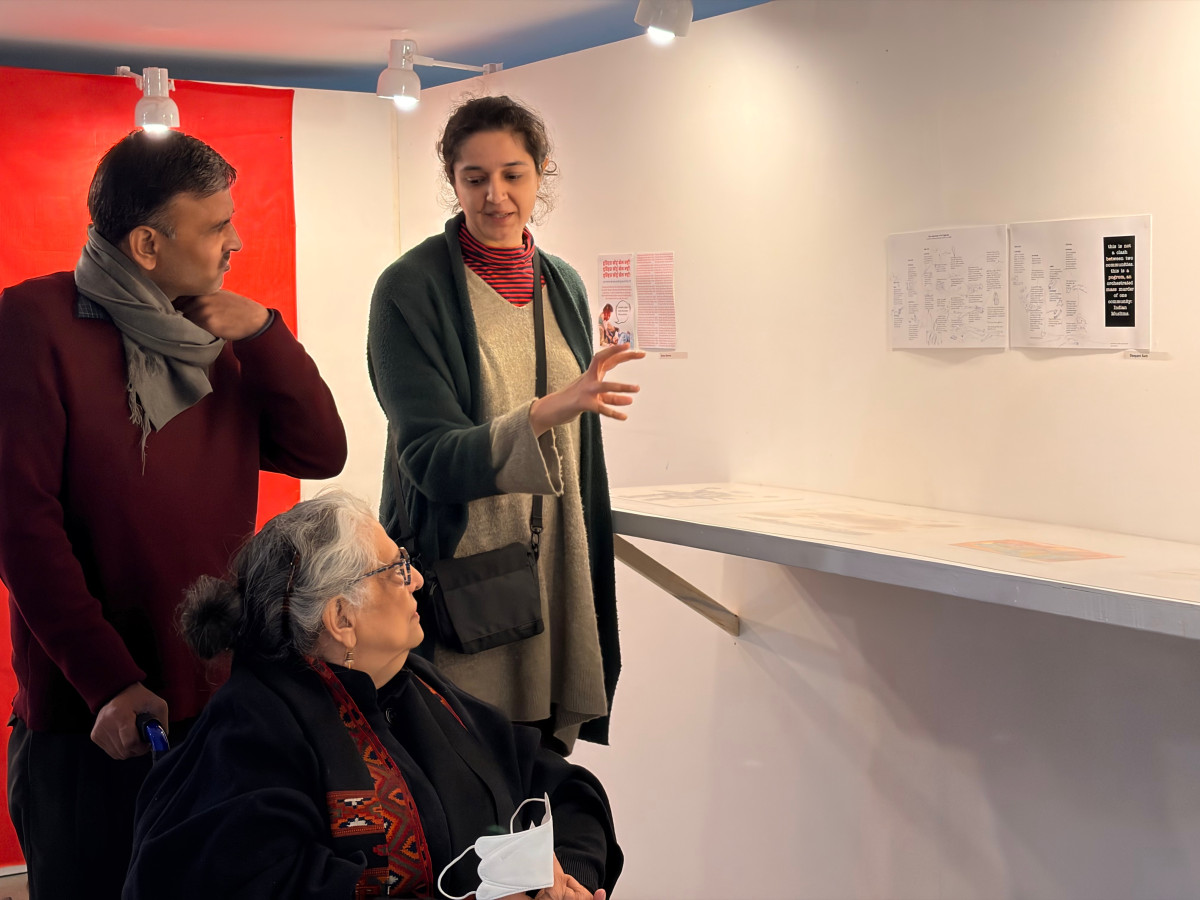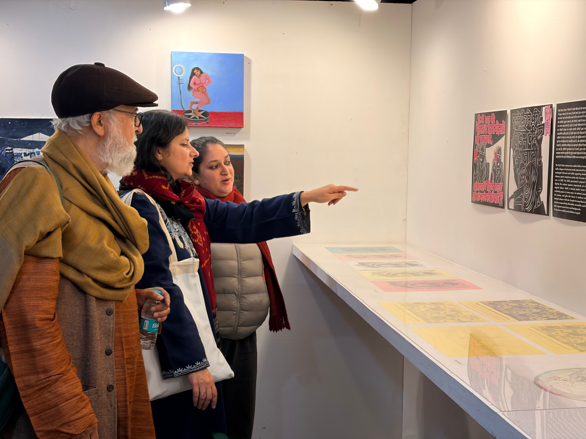 Visitors engaging with Parcha: The Political Voice, where the parcha emerges as a living, contemporary form rather than a relic of a bygone era. Photo: Eshan Sharma