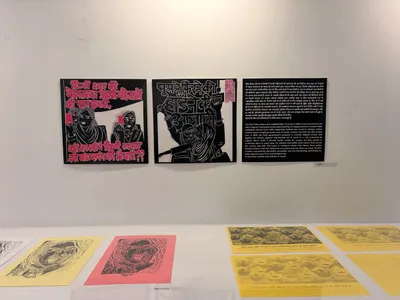 Visitors engaging with the parchas on display at Parcha: The Political Voice. Photo: Eshan Sharma
