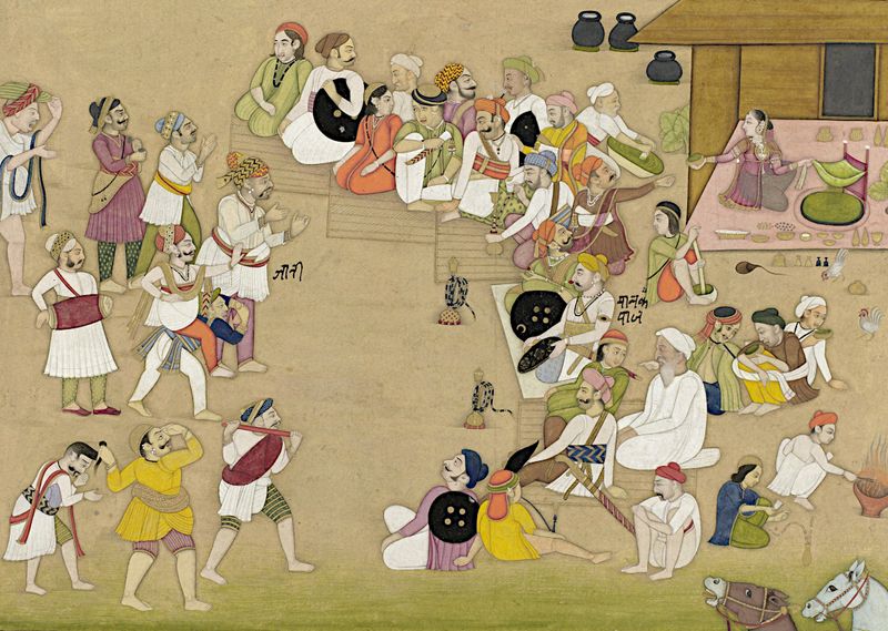 Opium Smokers Served Fruit and Bread; Mughal, India; c. 1750; Colour on paper; 18.5 x 29 cm. Image courtesy of Cleveland Museum of Art.