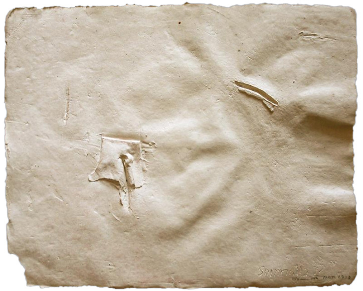 With his white-on-white series named 'Wounds', he reached a level of minimalism and abstraction such that there is no human depiction at all. He would prepare a clay matrix on which he'd make cuts and gashes, bruising and lacerating the surface, literally creating these 'wounds' – which he transferred to the paper that he himself made. It was a direct printing process with no intermediate layers and stages. He was forcing us to face and feel the wound itself.