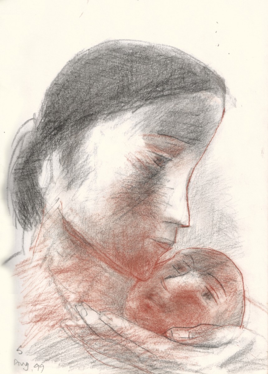 Sketch of mother and child, 1999, among the last of Somnath Hore’s works. Photo: Courtesy of R. Siva Kumar