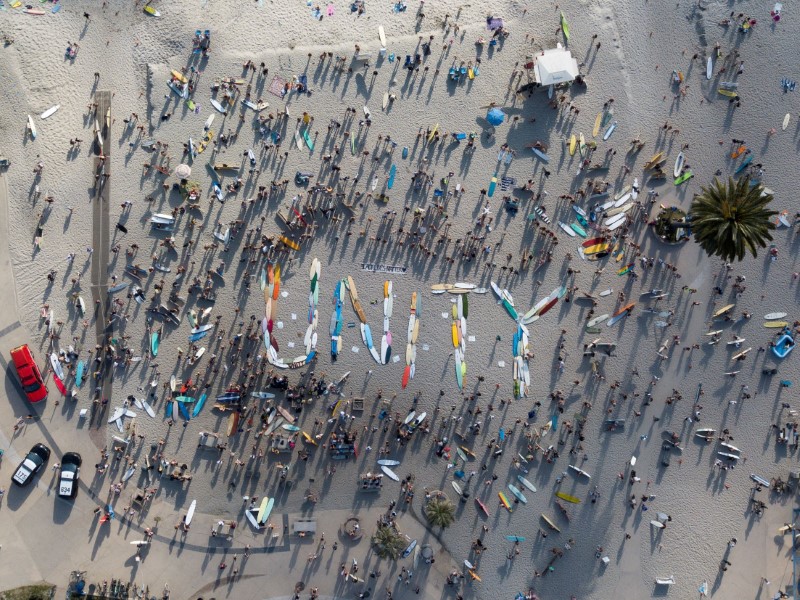 Hundreds of surfers gather in support of Black Lives Matter, following the death in Minneapolis police custody of George Floyd at Moonlight Beach in Encinitas, California, US, June 3, 2020. Photo: Tyler Transki/Handout via REUTERS