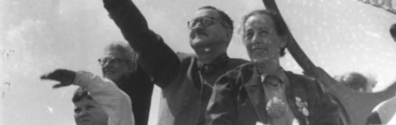Brecht with Helene Weigel on the roof of the Berliner Ensemble during the International Workers' Day demonstrations in 1954. Credit: Wikimedia Commons via CC BY-SA 3.0