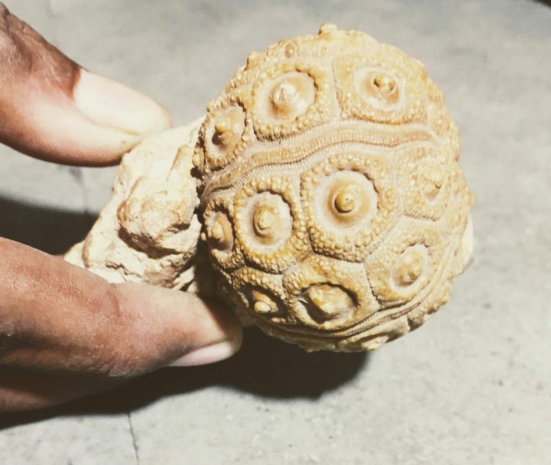Entombed in one of these boxes was the million-year-old, petrified fossil of the cidaris. It was blonde from the limestone that had meticulously ripped through every cell of its existence.