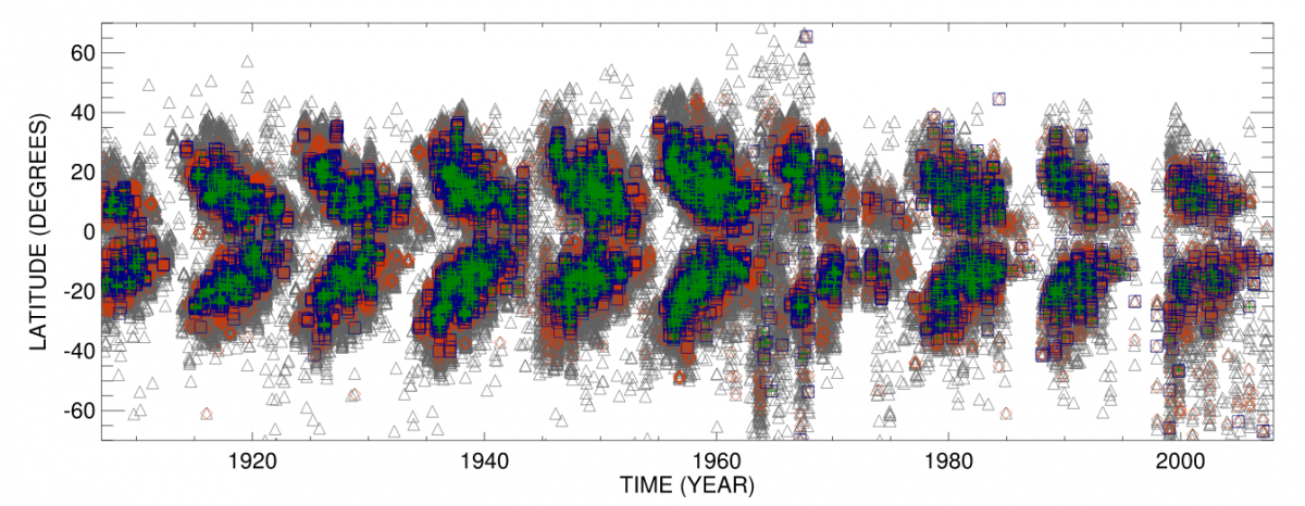 An example of a butterfly diagram composed using Kodaikanal Observatory data. Photo: Indian Institute of Astrophysics