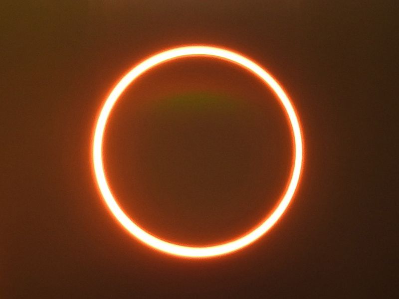 The annular solar eclipse is a kind of total solar eclipse when the Sun, Moon and Earth are aligned in a straight line. However, on this day, the apparent size of the Moon will be smaller than the apparent size of the Sun, causing only the central part of the Sun to be hidden from view. So the circular edge of the Sun appears like a shining bangle.
