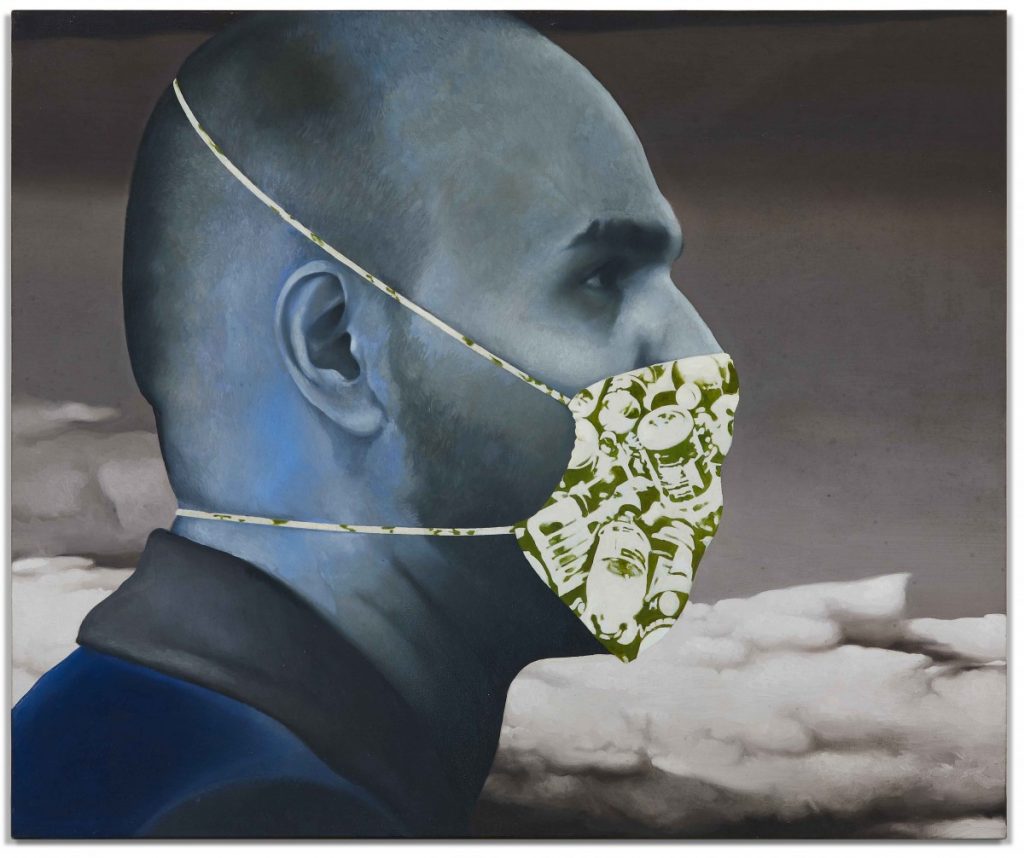 The man in the painting is not only staring at the unpleasant realities of the pandemic but is also enervated by it. If in Rudra’s paintings all men are unwittingly complicit in the machinations of those ensconced in the seats of power, then here, unhinged from reality, they are transposed into an unreal space of inaction. Displaced and disheartened at home and in the world, dreams seem to be their only refuge.