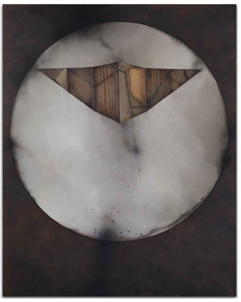 In the paintings of Suman Dey, the most abstract of the lot, the message seems straightforward, in keeping with the artist's palette and consistent with his conceptual explorations. Dilapidated corrugated metal sheets patched and put together in a shape resembling airplanes (a metaphor for the fallen man?) negotiate space and creative possibilities as they test the resilience of abstraction faced with the challenges of our time.