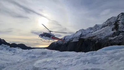 The glacier drops steeply from the Southern Alps into a rainforest, so I walk through lush green vegetation to the airfield. My friend’s gloomy talk about the dangers of helicopters is at the back of my mind. So, I’m nervous but excited as the charismatic pilot takes off.