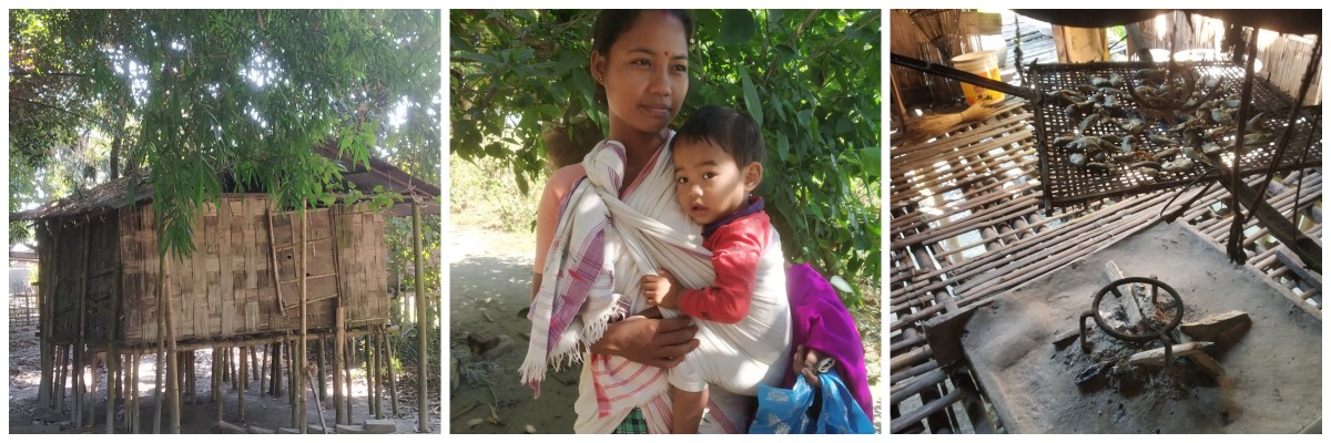 MIshing is a tribal village of weavers and fisher folk. The live in houses on stilts, in readiness to vacate when the Brahmaputra overflows. Their staple food is steamed fish. Each house has a loom under the stilts, where Mekhalas and Chadors, the traditional Assamese dress, are woven.