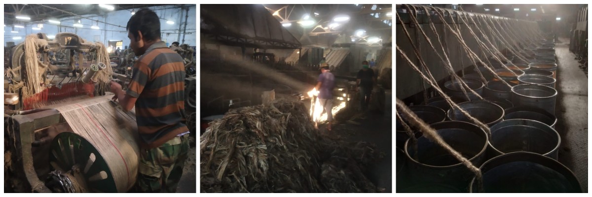 Near Silghat, we discover this jute mill. Along with agriculture, tea and silk, the manufacture of jute products provides livelihood in Assam. The workers worked without masks in a room full of jute dust and fibres.