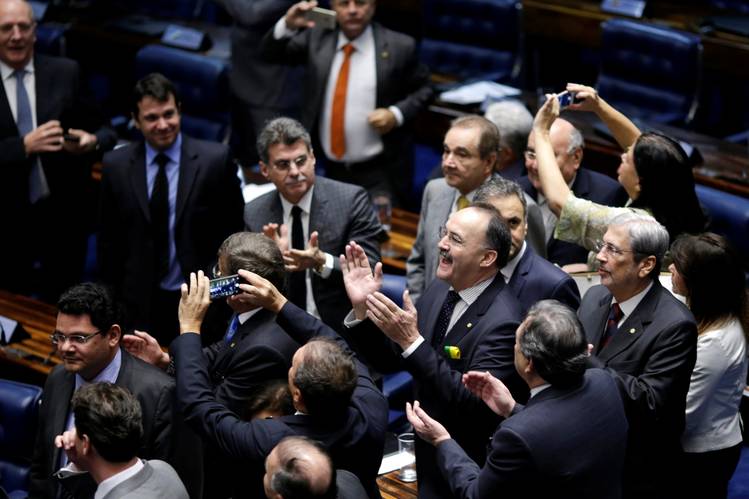 Last Thursday, Brazilian President Dilma Rousseff was suspended from the presidency when the Senate voted, 55-22, to try her on the impeachment charges, approved by the lower house, involving alleged budgetary manoeuvres (“pedaladas”) designed to obscure the size of public debt. Although she nominally remains the president and continues to reside in Brasília’s presidential palace, her duties are being carried out by her vice president, Michel Temer — now “interim” President Temer — and the right-wing, corruption-tainted, all-white-male cabinet he has assembled (due to Brazil’s coalition politics, Temer is from a different party than Rousseff). Rousseff’s suspension will last up to 180 days as her Senate impeachment trial takes place, at which point she will either be acquitted or (as is widely expected) convicted and permanently removed from her office.