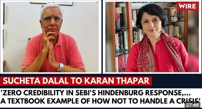 In a 25-minute interview to Karan Thapar for The Wire, she raises serious and disturbing questions both about SEBI, as the market regulator, and Madhabi Puri Buch, SEBI’s chairperson. Dalal also raises potentially damaging questions about the behaviour – actually silence – from SEBI’s board of directors and the Union finance ministry.