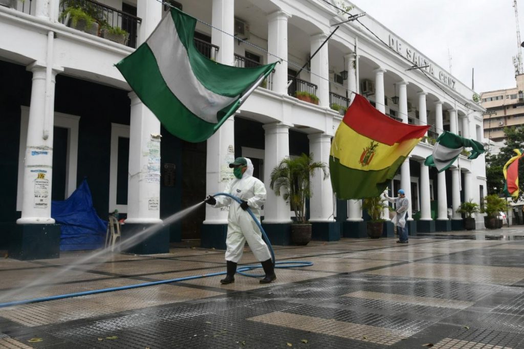 Local workers clean the streets as a preventive measure, due the coronavirus outbreak, in Santa Cruz, Bolivia March 26, 2020. Photo: Reuters/Rodrigo Urzagasti