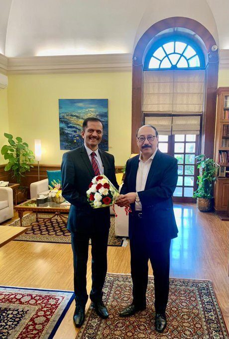 Bimal Patel being congratulated by foreign secretary Harsh Vardhan Shringla. Photo: Twitter/MEA India.