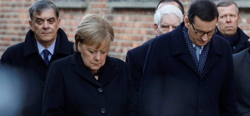 German Chancellor Angela Merkel and Polish Prime Minister Mateusz Morawiecki stood silently in front of the Death Wall at Auschwitz, in the tiny courtyard Nazis executed thousands of Poles. It is a site that remains extremely painful for Poles to this day.