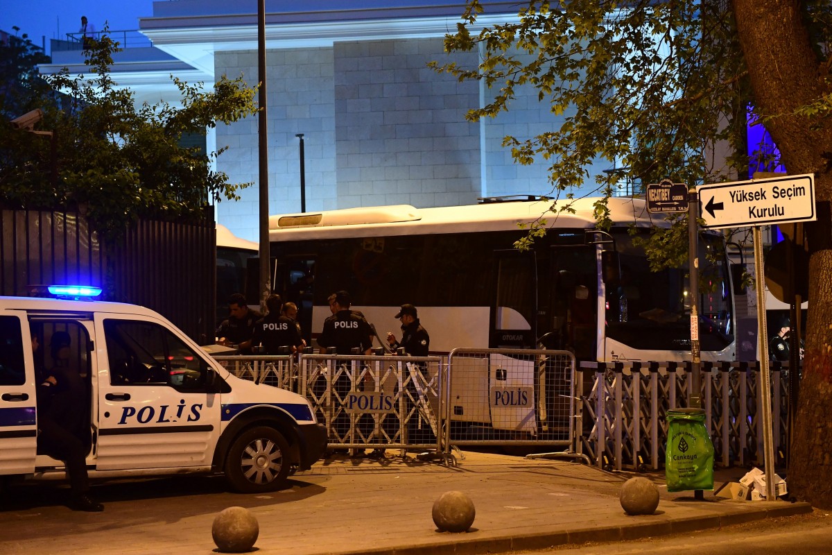 Turkish police stand guard outside the High Election Board (YSK) in Ankara, Turkey, May 6, 2019.