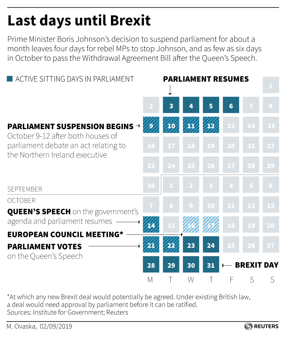 On Wednesday they will seek to pass a law forcing Johnson to ask the EU to delay Brexit – for a third time – until January 31 unless he has a deal approved by parliament beforehand on the terms and manner of the exit.
