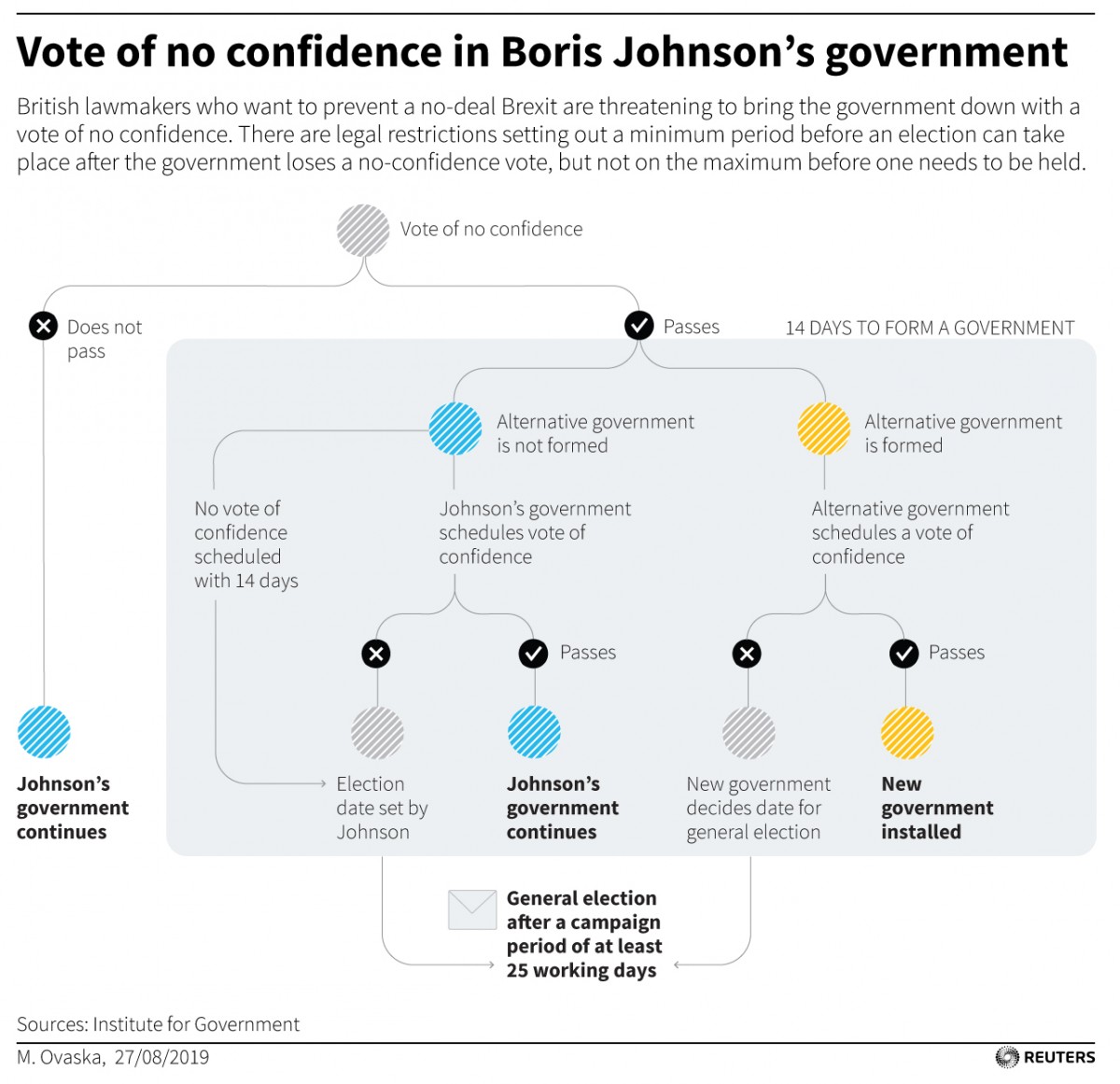 Johnson's government will now seek to hold a vote on Wednesday to approve an early election, most likely on October 14. This would pit the avowed Brexiteer against Labour leader Jeremy Corbyn, a veteran socialist.