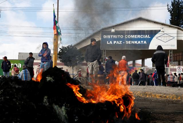 People line up to get gas cylinders refilled due to a blocked petrol plant of Senkata, in La Paz,, November 20, 2019. Photo: Reuters/David Mercado