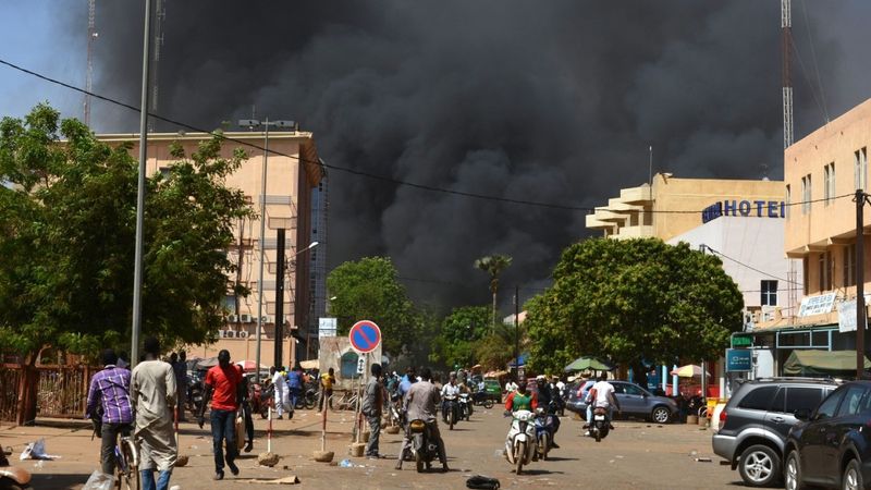Soldiers stand guard in front of the Splendid Hotel after an attack on the hotel and a restaurant in Ouagadougou, Burkina Faso, January 18, 2016. Photo: Reuters