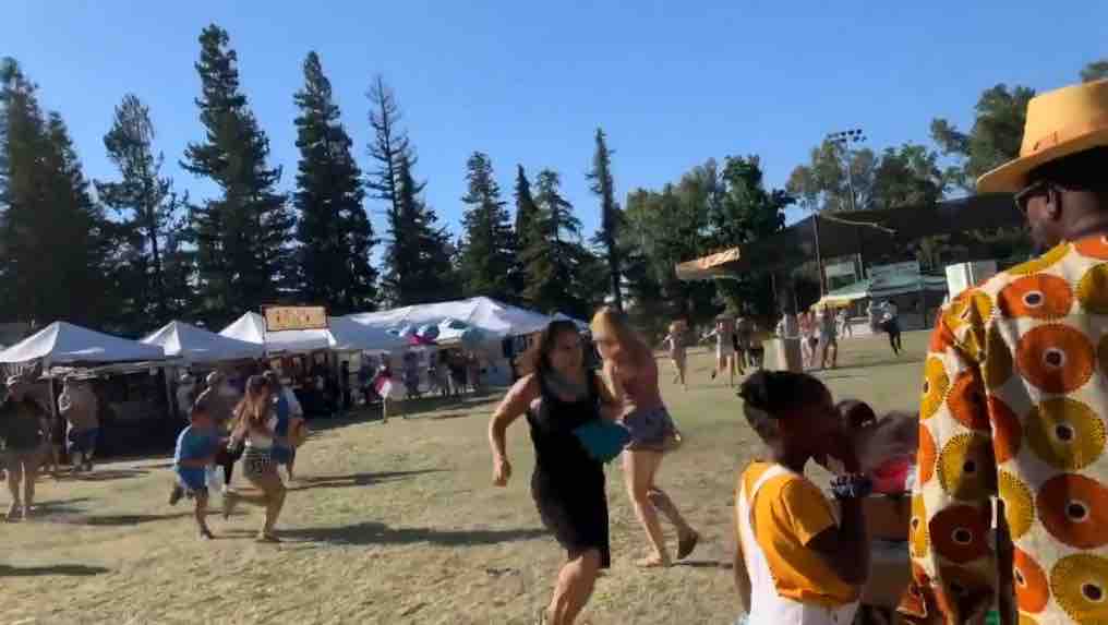 People run as an active shooter was reported at the Gilroy Garlic Festival, south of San Jose, California, US, July 28, 2019 in this still image taken from a social media video. Courtesy of Twitter @wavyia/Social Media via Reuters.