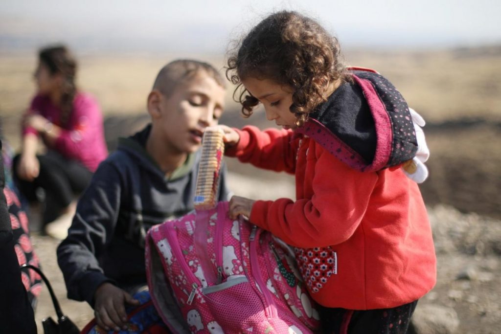 “Our house is gone. We tried to stay in schools in Tel Tamir but there is no space, while renting an apartment in Qamishli cost 50,000 Iraqi dinars ($42 a month) which I don’t have,” the 40-year old said, standing next to his wife and two young children.